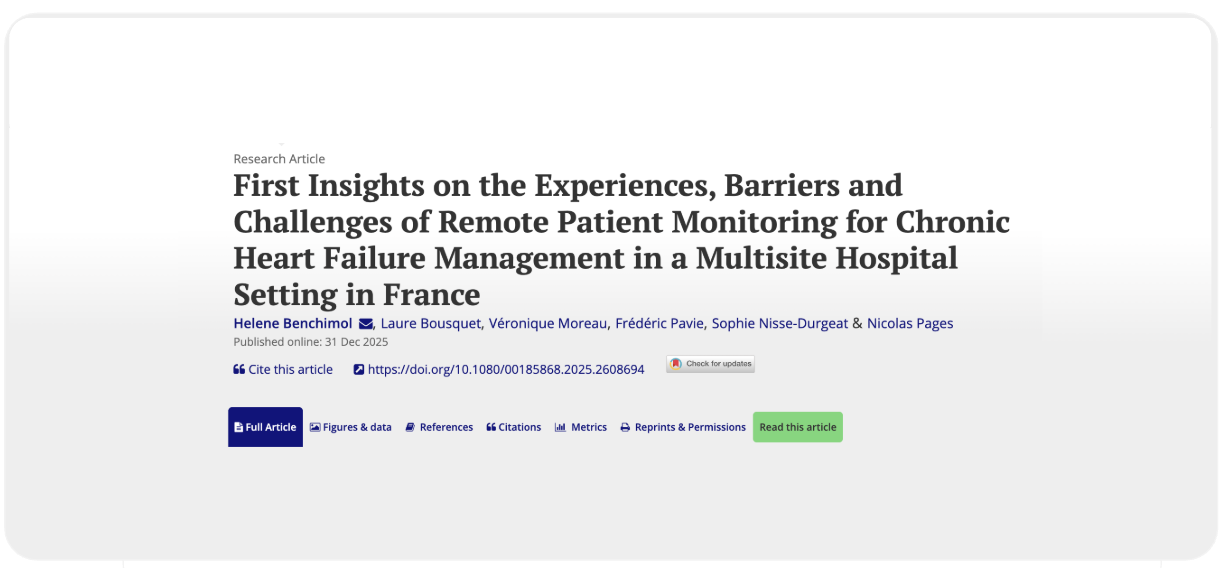 « La télésurveillance a été globalement bien acceptée par les professionnels de santé, qui la perçoivent comme un outil pertinent pour le suivi des patients insuffisants cardiaques en conditions réelles. »